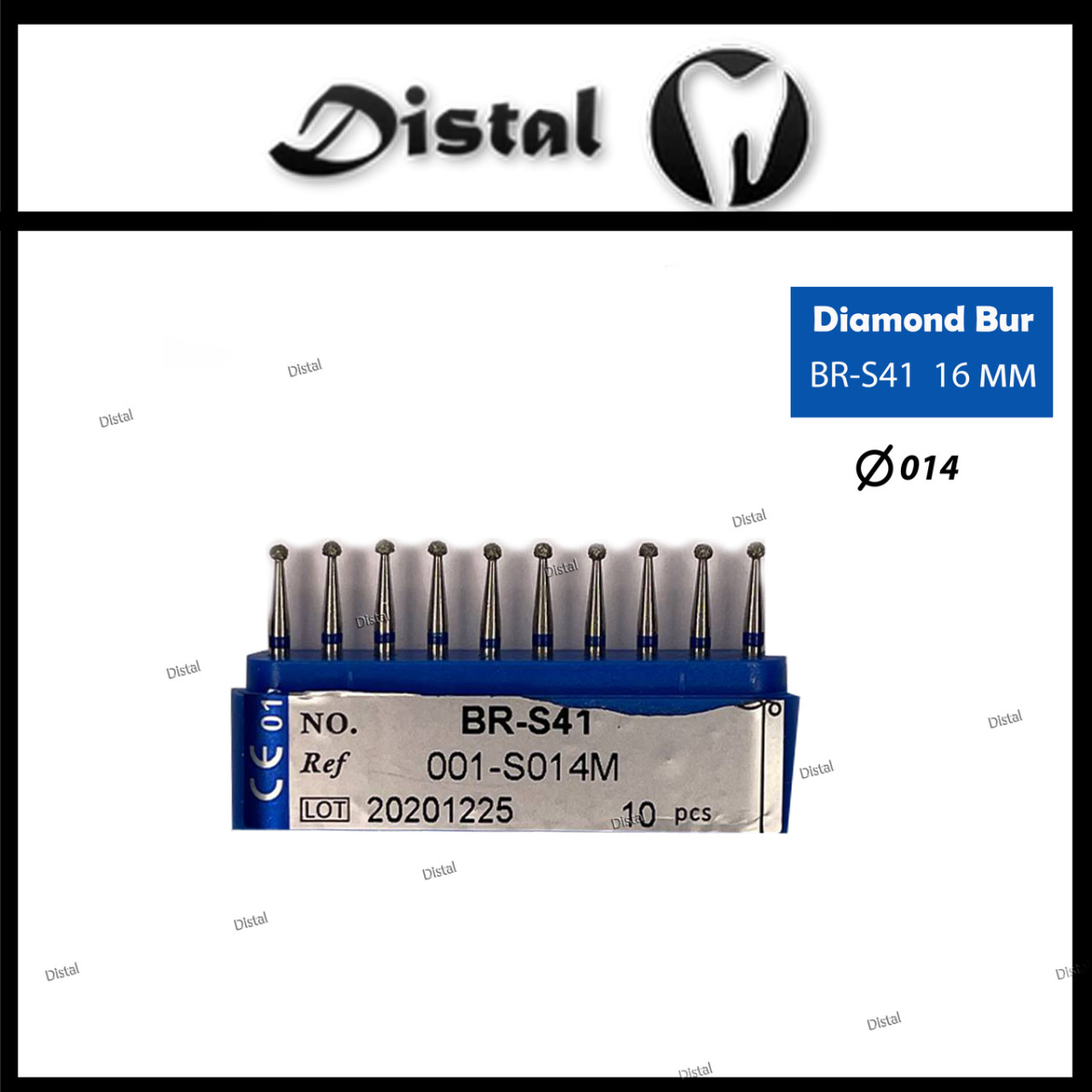 Стоматологічний бор алмазний BR-S41 для турбінного наконечника 16 мм Кулястий