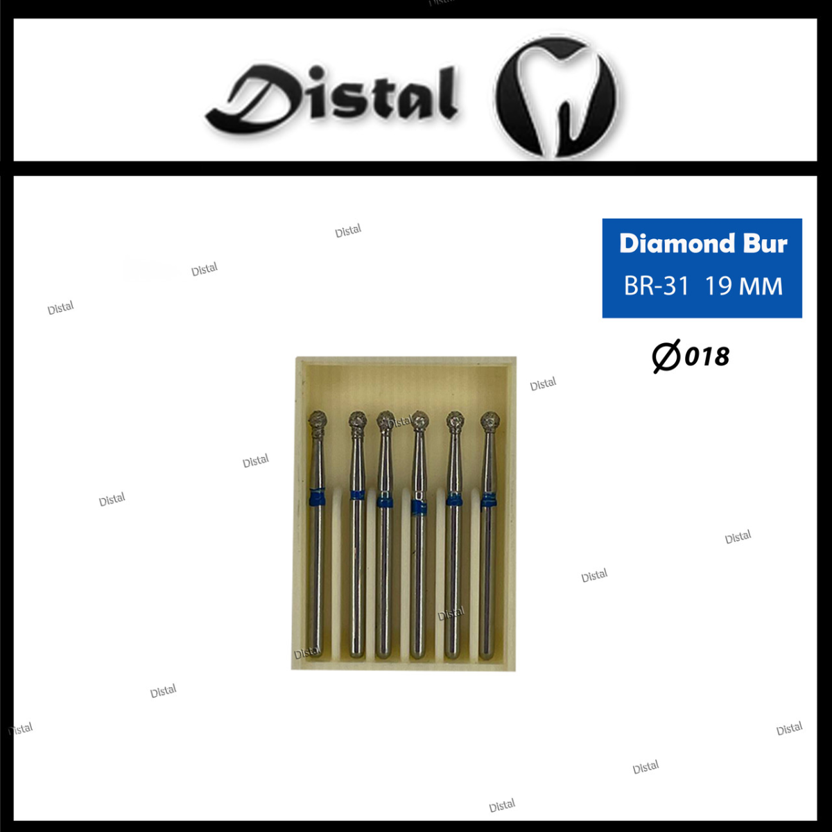 Стоматологічний бор алмазний BR-31 для турбінного наконечника 19 мм Кулястий