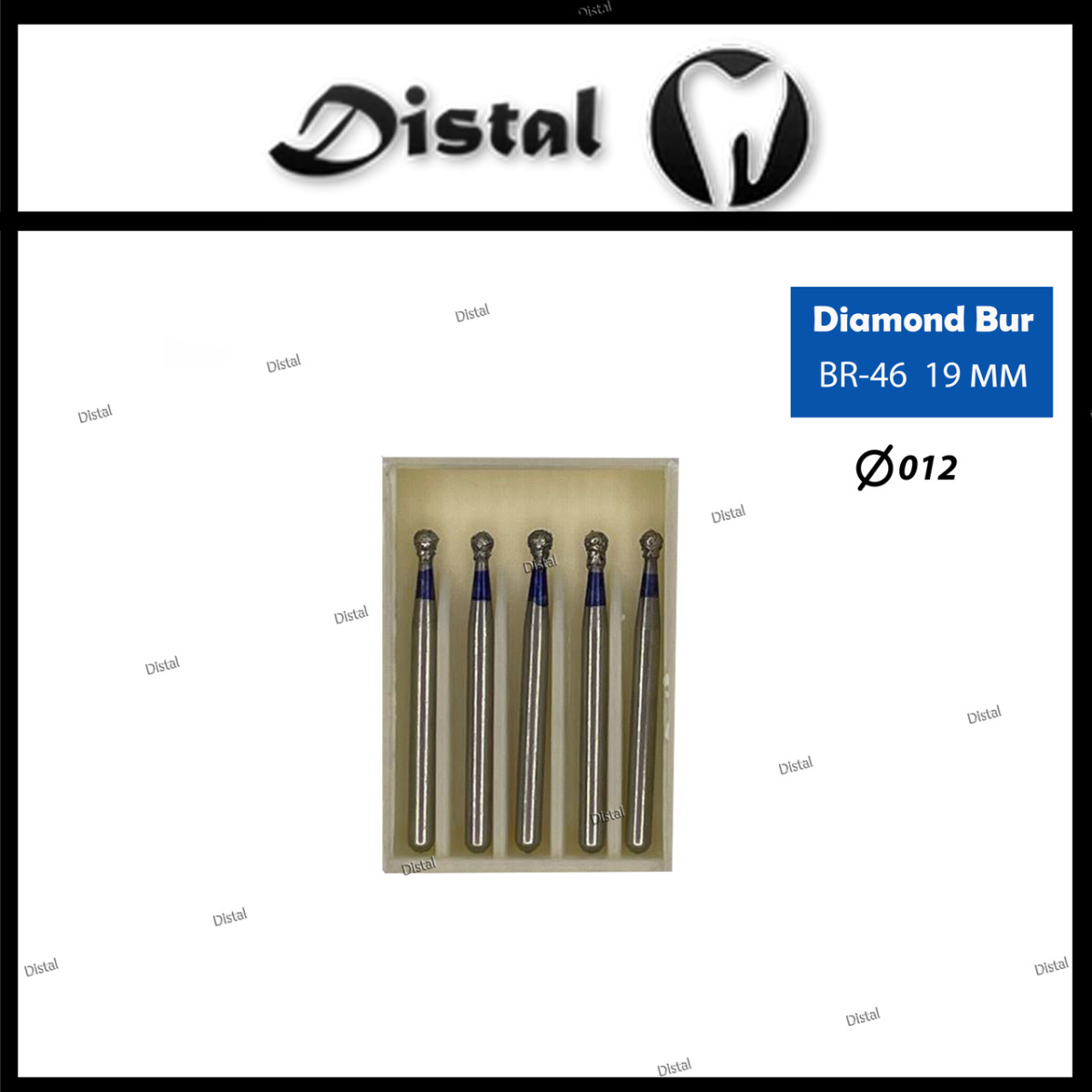Стоматологічний бор алмазний BR-46 для турбінного наконечника 19 мм Кулястий