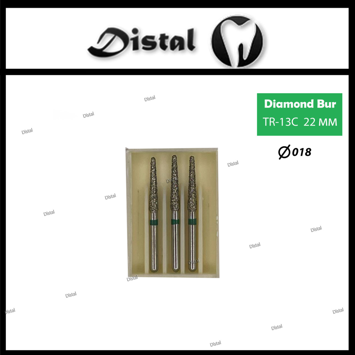 Стоматологічний бор алмазний TR-62С для турбінного наконечника 21 мм Конусоподібний, закруглений кінчик