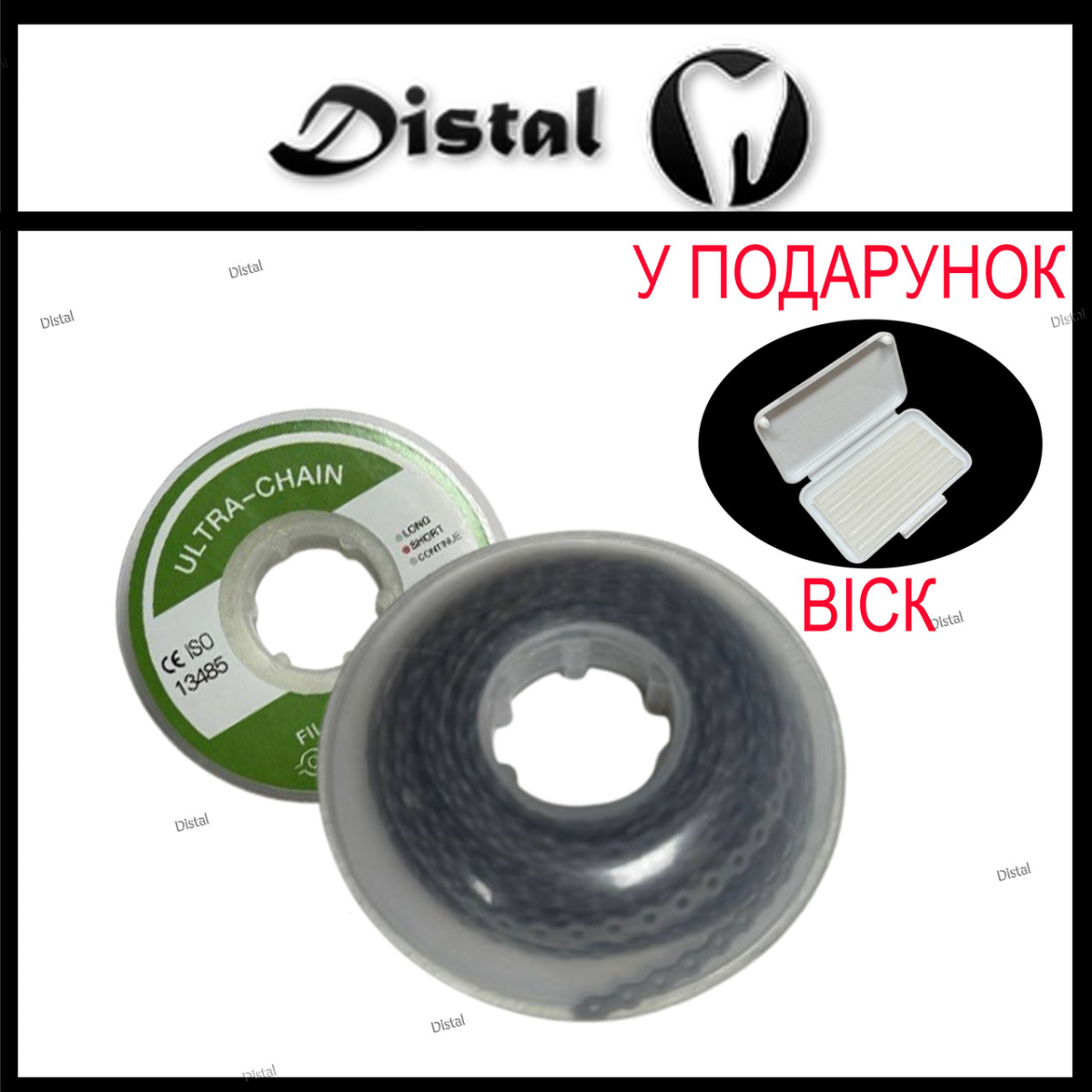 Ортодонтичний еластичний ланцюжок Short (короткий), Сірий, 1 шт.