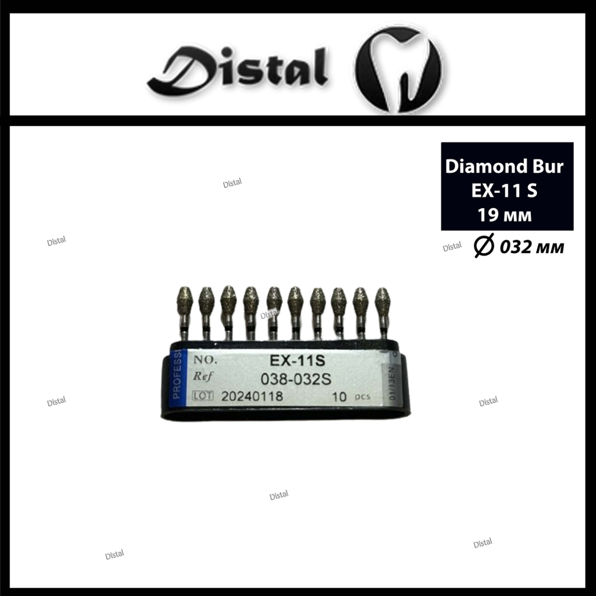 Стоматологічний бор алмазний EX-11S для турбінного наконечника 19 мм Cпеціальна форма