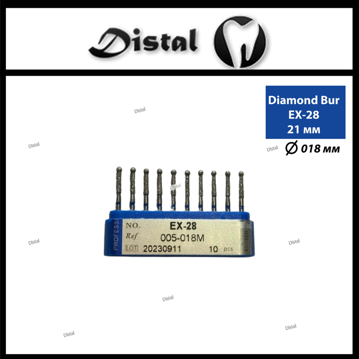 Стоматологічний бор алмазний EX-28 для турбінного наконечника 21 мм Cпеціальна форма